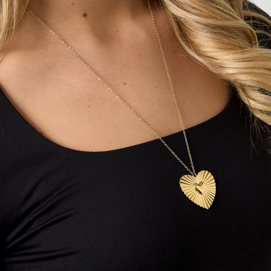 Ketting striped heart - Goud